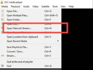 در کادری که در تصویر مشخص وارد کنید و گزینه open network stream کلیک کنید