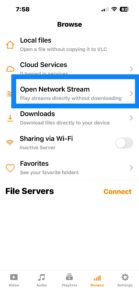 برای شروع پخش آنلاین تنها  کافی لینک دانلود فیلم یا سریال از داخل سایت فردا مووی  کپی کنید و وارد برنامه VLC روی گوشی اندرویدی خود شوید مطابق تصاویر زیر عمل کنید